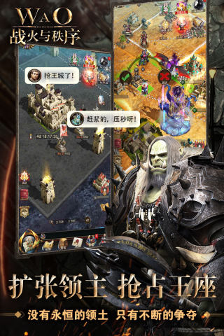 在《战火与秩序(War and Order)》弱肉强食的冷兵器时代里,每片不同的土地,部族与国王上演着同样的轮回,推翻、抵抗,再推翻再抵抗,红袍法师和喷火红龙也只为真正的强者臣服。WAO已经聚集了大量的世界英雄,他们割据一方,疯狂地掠夺土地资源献给国王。美洲、欧洲、亚洲的国王已经产生,我们正在重金寻找真正男子汉! 【游戏成绩】《战火与秩序(WAO)》上线至今,共获得了6次全球推荐,5次地区推荐。