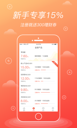 火钱理财手机版可以让你了解更多的理财资讯,让你理财更有针对性,多种优质产品让你收益稳健,还有6重安全保障措施,资金银行托管让你放心,还有新手大礼等你来拿哦,赶快来下载看看吧。