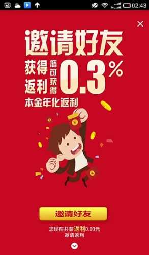 2. 邀请好友投资,将获得被邀请好友投资额年化3‰邀请返利,邀请越多,赚钱越多