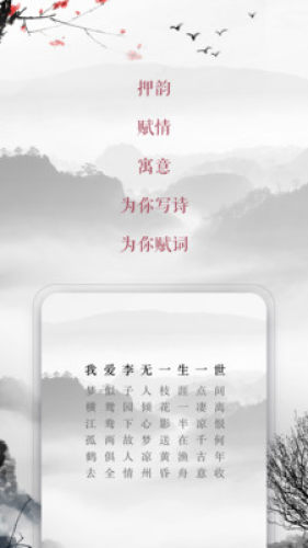 藏头诗app,一款非常方便实用的藏头诗生成器。在这里古诗文、唐诗三百首等诗词资源任你在线学习,各类精彩的藏头诗制作生成功能等你体验,轻松一键生成你的藏头诗!
