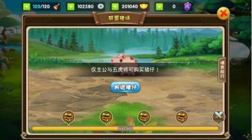 初始联盟没有猪,需要联盟主公购进才可养猪,一头猪价格为:5000军粮。购进猪仔按钮仅公会会长与管理员可以点击购买,其他成员点击提示“仅联盟主公与五虎将可购进”。 购进猪仔后,联盟界面变为(标记红框的ICON出现情况特殊,下面会讲):