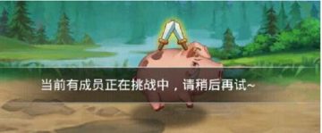 如果有人在挑战,则猪的头像显示一把会动的双刀,玩家点击“杀猪大会“给予提示,当前有成员正在挑战中,请稍后再试。