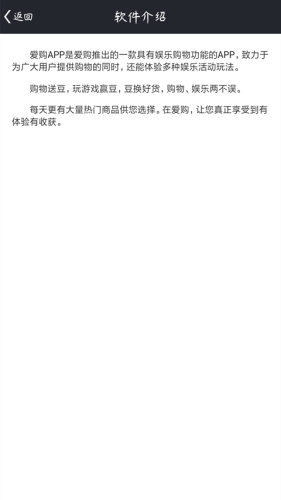 爱购是一款专注于娱乐购物的app。使用爱购app,就能让你娱乐购物两不误,超多好玩的玩法等你来体验哦,快来下载试试看吧!