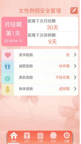 女性例假安全管理,备孕管理更全面,这里有例假管理,有丰富的管理服务,宝宝计划,安全期说明,有需要的女生们快来下载吧。