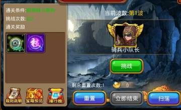 神秘洞穴玩家可在18级进入活动副本,该活动副本奖励最丰厚,种类最多的每日副本不仅仅奖励多,该副本还有对应的排行榜系统,通关数越高的玩家可获得的排名奖励越多也是除战斗力以外,最能定位自己实力的有效手段之一玩家通关次数越高,对应的关卡难度也就越高而且,武将状态每层都会继承上一层的也就是说如果玩家武将在之前的战斗中战败,下面的战斗是无法继续上阵的直到全员失败后重置次数方可再次上阵每到一定的阶段都会发放额外的层数宝箱另外每10层都会有3层的特殊奖励层,会获得额外的物品奖励该副本每日最多可免费重置1次,使用元宝可多次重置使用元宝重置次数上限与玩家VIP等级有关,详情可以查看VIP功能重置后可以使用扫荡功能进行挂机战斗这样既可以不用手动战斗,又可以不用死将到达之前挑战的最后一层可以非常有效的让自己继续满状态挑战之前未能通过的难关总之,该副本是个非常利于玩家发展的副本系统,建议每日必做。