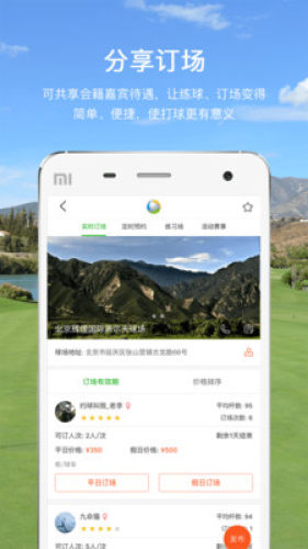 3、 练习场: 随时发布和购买心仪练习场的打球信息;告别一张球卡只能去一家练习场。