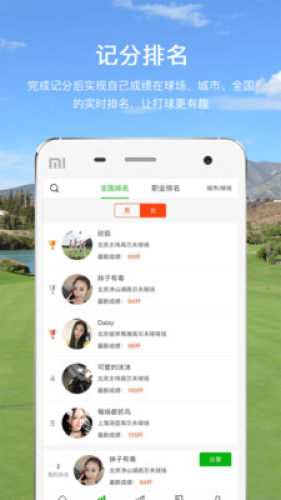 2、 定时预约:随时查找其他人提前预约的打球信息;告别只能打在一个球场打球、约人打球难、没卡不能打。