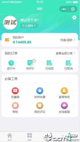 您可自选技师并查看技师的详细介绍(距离、头像、从业经验、状态、评论),项目、下单、支付的。