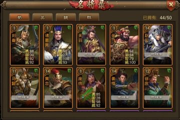 在名将录中,可查看各个阵营各个品级的武将,各个武将的成长值等各项属性、技能、可带兵种一目了然,让您在选择武将搭配阵容的时候更加轻松。