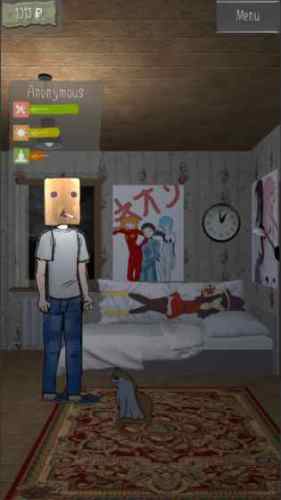 游戏人物永远不会出门,接触外界的「窗户」是互联网。需要通过工作、吃饭、游戏、购物等行为平衡自己的饱腹、愉悦、耐性三个数值(工作当然是三个数值都减,但是能赚钱维持生活)。在小房间中生活下去。嗯,就这样一成不变地生活下去。