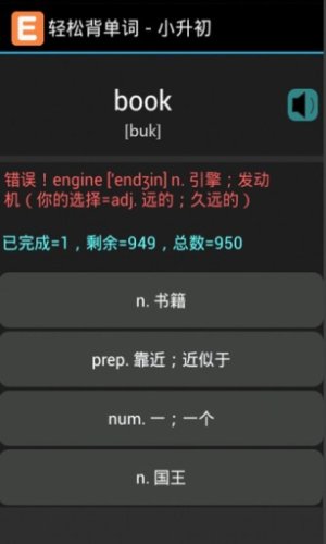 直至单词库中单词数目为零,结束本级别单词的记忆。非常适合应付各类考试。