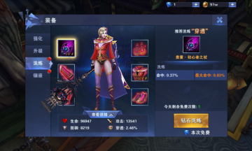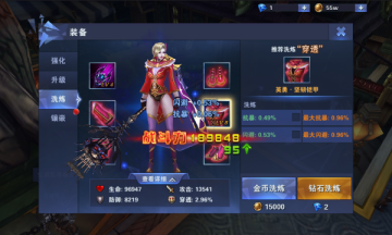 通过使用金币或钻石,我们可以将装备上已有的属性洗去,并换上新的属性,在众多的属性项目中,以穿透属性对战力的加成最大。