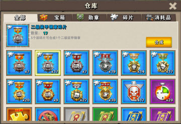 玩家可以查看已经收集到的勋章、宝箱、碎片等物品。