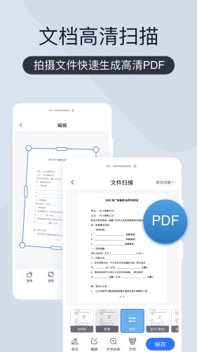 * 支持高清扫描单张文件、多张文件或书籍,快速生成PDF扫描件,扫描件可调整色彩、亮度等