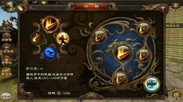 四个主动技能可以使用铜币进行升级,升级后技能的伤害数值会有所提高,但是技能的等级不能高于玩家等级。