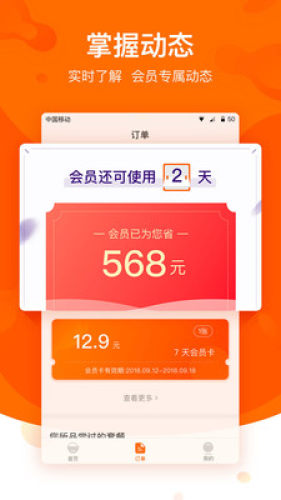 2.提供会员卡账单实时监控每笔节省价格及会员到期提醒。