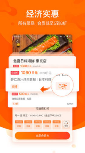 1.全新模式,与商家合作提供日本当地商家特色美食,购买会员卡给与4-8折优惠。