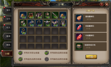 3.等级越高、品质越高的装备,分解产出稀有材料的概率越高