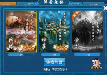 玩家不允许转入当前最强的阵营,也不能转入自己原本阵营。例如:现在最强阵营为昆仑,此时蓬莱和苍穹的玩家不能转入昆仑,但彼此可以互相转换,昆仑阵营的玩家可以转入蓬莱或者苍穹任意一个;
