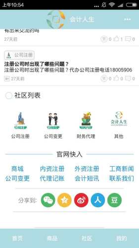 2、社区:主要分为4个社区,分别为公司注册社区、公司变更社区、财务代理社区、其他社区,为福州企业提供自由交流
