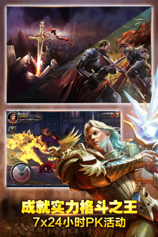 王者战魂是一款经典的热血格斗手游。游戏拥有四大职业,供玩家选择扮演,还有最劲爽的打击感,为玩家完美还原了经典的街机格斗体验。游戏拥有.画面华丽,职业特色鲜明,支持多人在线PVP竞技和组队副本,给你非凡的游戏体验。数百战役让你爽翻天、无限制竞技场PK;军团战15V15乱斗,开创手游最强PK模式。还有惊险的多人地下城副本、支持30人同时对决的骑士团玩法,更是为玩家带来一个紧张刺激的魔幻竞技世界。喜欢这款热血格斗的玩家赶紧拿起手机下载体验吧!现在来玩还有超值的好礼等你领取哦!