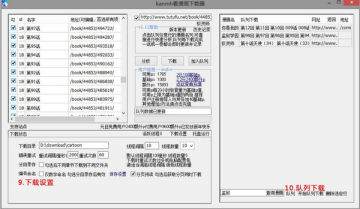 10.队列下载,可以把待下载选好的漫画分析,然后勾选需要下载的章节后,点击队列-加入队列,即可出现在右侧队列下载栏里,重启软件后依然有效,点击开始队列下载,即可从上往下进行任务的依次下载,完成章节或漫画后都会更新队列状态,比如《你是我的老师》漫画1-12话在队列中,进行队列下载,第1话下载完成后将更新队列为2-12话。这部漫画队列下载后将进行下部漫画的队列下载。