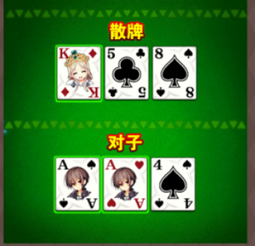 2.散牌:包含J、Q、K、A中任意一张所组成的牌型。