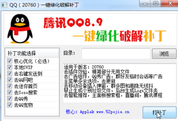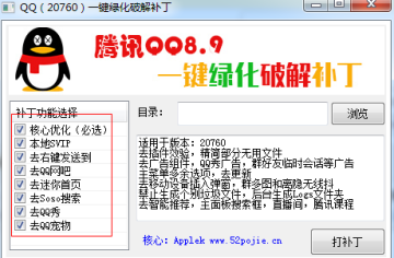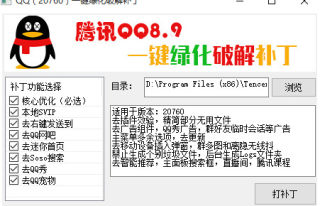 本补丁实现一键绿化破解QQ软件,二代补丁,多种功能可选。