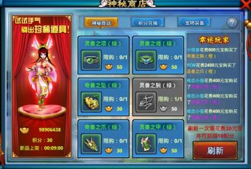 使用元宝刷新商品还可获得神秘商店积分,累积足够的积分后可以在神秘商店内直接兑换高品质的装备。
