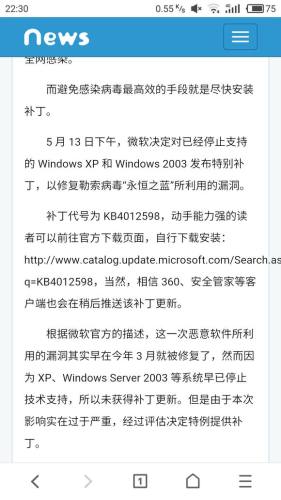 其实这个漏洞在今年3月就已经提供补丁了,只不过xp和2003系统因为停止支持而没有开发对应补丁。鉴于“永恒之蓝”病毒爆发速度太快影响面积广,微软决定为这两款虽已停止支持但使用率依然较高的系统提供本补丁。
