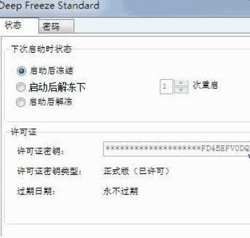CTRL+ALT+SHIFT+F6呼出DeepFreeze的控制面板,这个时候DeepFreeze会提示你要你输入管理员密码,输入密码后,可以看到所示的控制区。