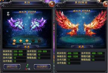 玩家到达一定等级后,自动开启羽翼系统,可通过功能界面中的羽翼图标可进入羽翼界面,羽翼和御兽一样,能够带来属性和战斗力上的增长,同时能够带来角色外观上的变化。玩家通过获取妖翎来升级羽翼。
