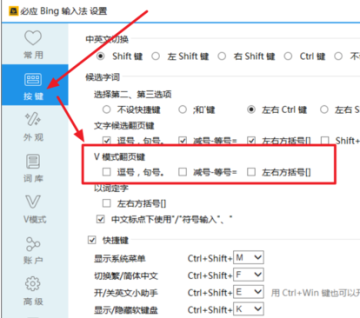 4、按个人习惯设置好设置翻页的快捷键,刚开始使用必应Bing输入法还是感觉不习惯的。