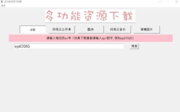 多功能资源下载器功能十分强大,体积小巧,可实现B站视频下载,网易云公开课下载,酷狗音乐下载,网易云音乐下载等,赶快下载使用吧!