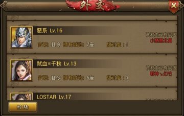 点击任意外交系统里面的任意玩家,都可查看该玩家的信息。等级,官职,参与局数,统一次数,武将数量均可查看。从其个人信息,可判断其实力强弱,点击查看武将按钮,可查看该玩家的武将阵容。、