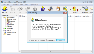 Internet Download Manager支持下载队列、防火墙、代理服务器和映射服务器、重新导向、cookies、需要验证的目录,以及各种不同的服务器平台。此程序紧密地与Internet Explorer和Firefox、Opera结合,自动地处理你的下载需求。此程序还具有下载逻辑最佳化功能、检查病毒,以及多种偏好设定。