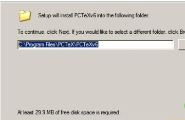4、设置一下安装目录,默认为“C:\Program Files\PCTeX\PCTeXv6”