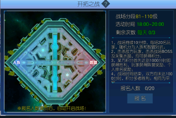 开拓之战每天有3次参加机会,而且每天需要在固定的时间段才可以进行报名,报名人数到达20人即可开始游戏