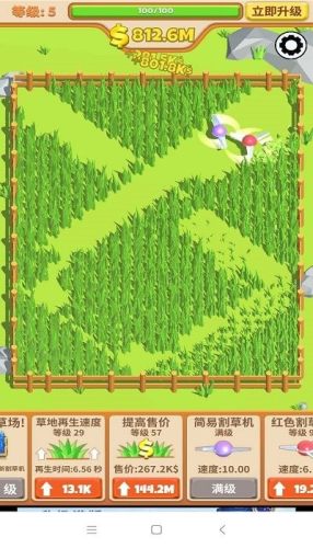 4、点击屏幕,操纵割草镰刀,割掉无止境的小草,解锁更多新道具