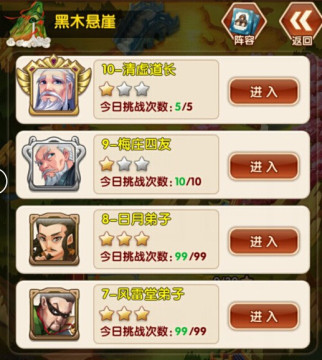 每个副本都有10个关卡,最后的关卡为大boss,每天允许挑战5次