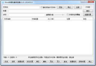 Word标题批量修改器是一款专为Word文档设计的标题批量修改工具。本软件不仅可以批量修改Word文档的标题,还可以批量增加word水印,是用户进行Word文档处理的好帮手。