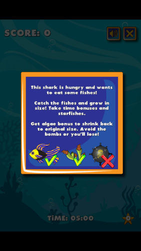 饥饿的鲨鱼开始了他的狩猎之旅,作为深海里的霸者大鲨鱼无所畏惧,唯一害怕的就是魔鱼猎手们的鱼雷。在游戏中,鱼儿们会远离饥饿鲨鱼,玩家控制鲨鱼尽量获取更多的食物(有的食物会有特殊的功效的哦),同时小心躲避鱼雷取得更高的分数。