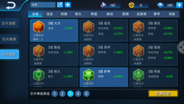 芯片是机甲的重要组成部分,不同的芯片能为机甲提供不同的属性加成。不同种类的机甲搭配合适的芯片能使机甲在战场上发挥关键的作用。