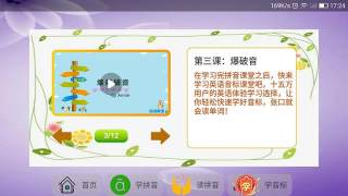跟动画人物一起学习拼音,老师先读一遍,小朋友跟着读,连续读三次。支持左右切换拼音。