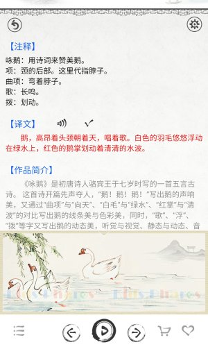 == 名师朗诵诗词,译文也配语音。专业好听,字幕同步。支持离线听读。对儿童早教特别有帮助。