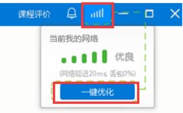 如果是PC端,鼠标放到教室右上角的网络信号上即可看到“一键优化”按钮,点击优化即可。同时可以检查下自己所处环境下的网络情况如何。