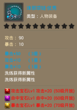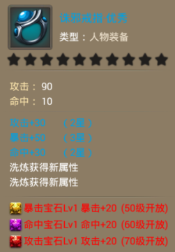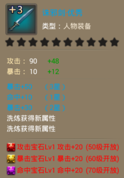 可通过洗练获得新的属性,此外可以通过强化、升星及镶嵌宝石等方式来提高装备的属性值