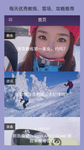 天天酷玩是为户外运动爱好者,特别是滑雪爱好者提供资讯知识、运动教练、场地门票和运动装备的应用。