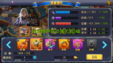 1,强化武将及武将技能时,平均分配,战力提升最高,强化至上限时,在主城点击英雄按钮武将飞升。