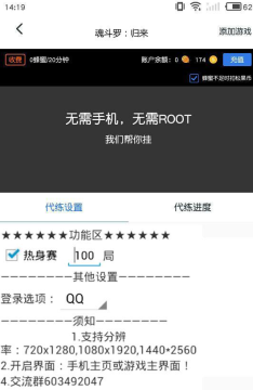腾讯魂斗罗归来手游免ROOT挂机脚本分享给大家。这是一款专为腾讯魂斗罗归来手游打造的免ROOT可离线挂机辅助工具。这款工具可以帮助玩家24小时离线挂机,轻松一键启动,非常简单方便好用的!